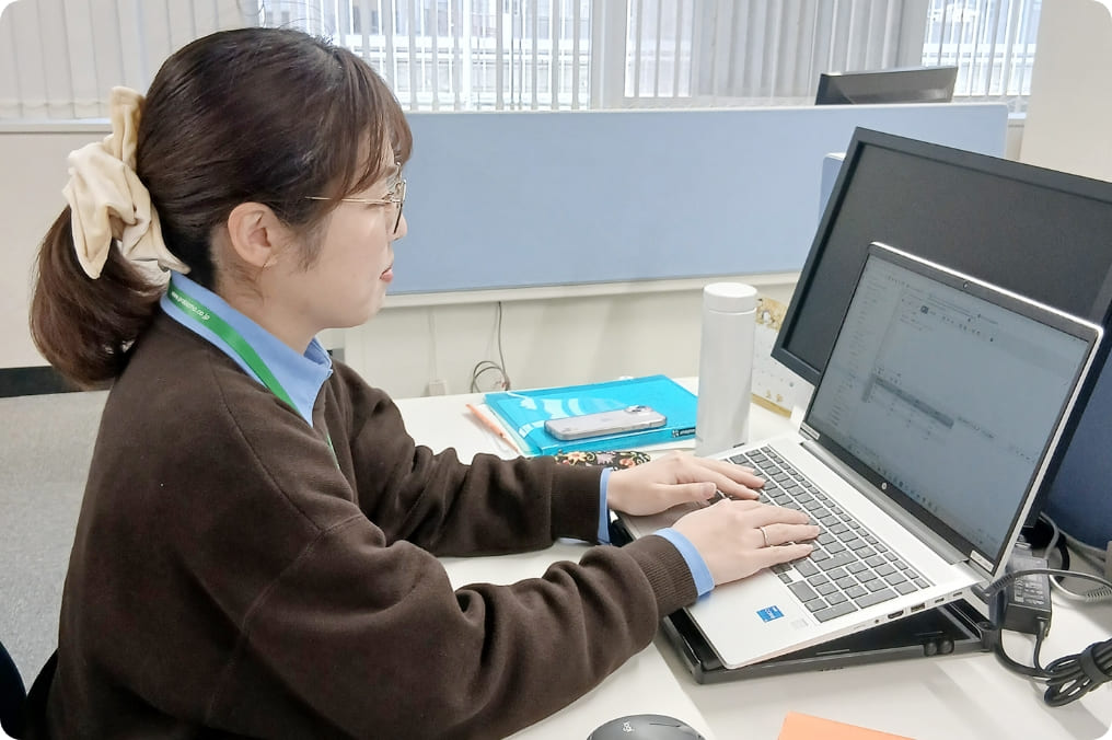 入社してまだ間もないのですが、コツコツ学ぶことが好きな自分には、今の研修環境が合っていると感じています。